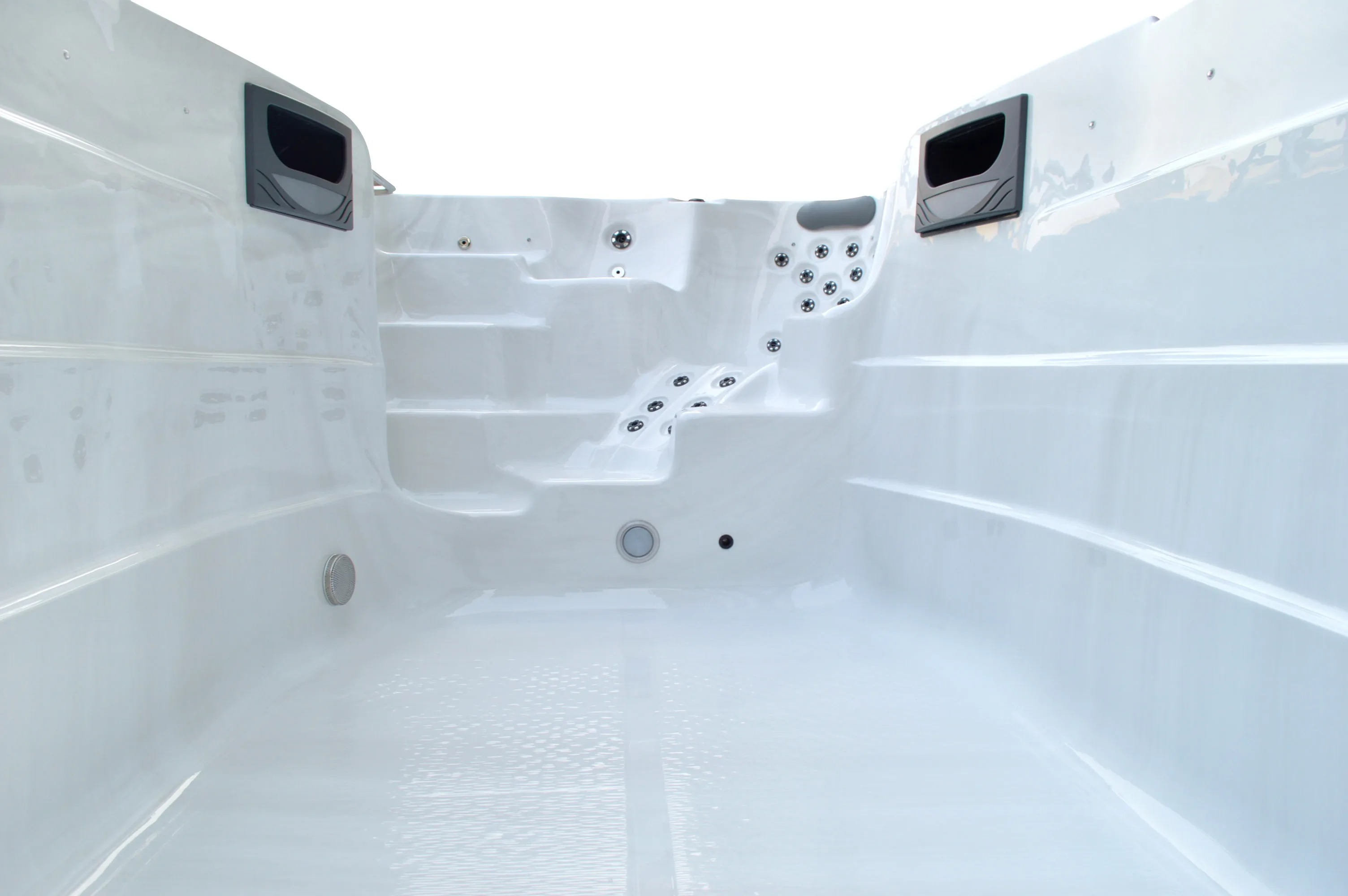 Это полностью готовое решение для тренировок и отдыха. Мощную систему гидромассажа, создающую невероятный комфорт в спа-зоне, обеспечивают 101 сменная форсунка. Эффективный массаж и мощные водяные потоки создаются четырьмя производительными насосами: два насоса мощностью 2,2 кВт для спа-зоны, и два мощных насоса: 2,2 кВт и 2,9 кВт для плавательной зоны, что позволяет создать идеальное встречное течение для плавания.